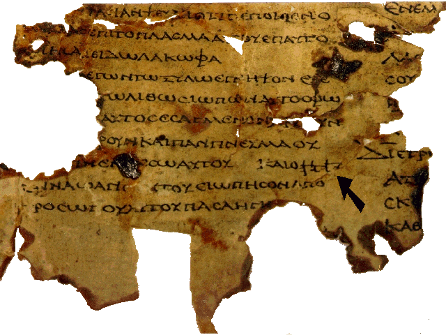 ナッシュ・パピルスは紀元前2世紀の断片で、十戒(おそらく出エジプト記20章と申命記5章を反映している)とシェマー(申命記6:4-5)が記されていました。「エホバ」(יהיה)は、左列の最初の行の1文字が欠けた1箇所を含む6箇所に記録されています。右側に飛び出た部分に1箇所書かれています。