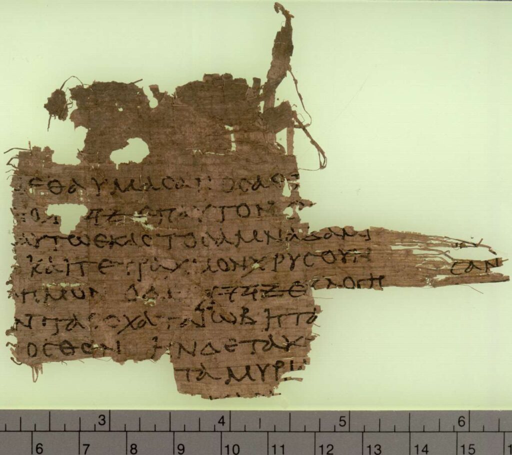 ヨブ記42:11-12節をギリシャ語に訳したセプトゥアギンタ訳です。ギリシャ語本文中に、エホバ(𐤉𐤄𐤅𐤄)の名前が2回、古ヘブライ語で記されています。