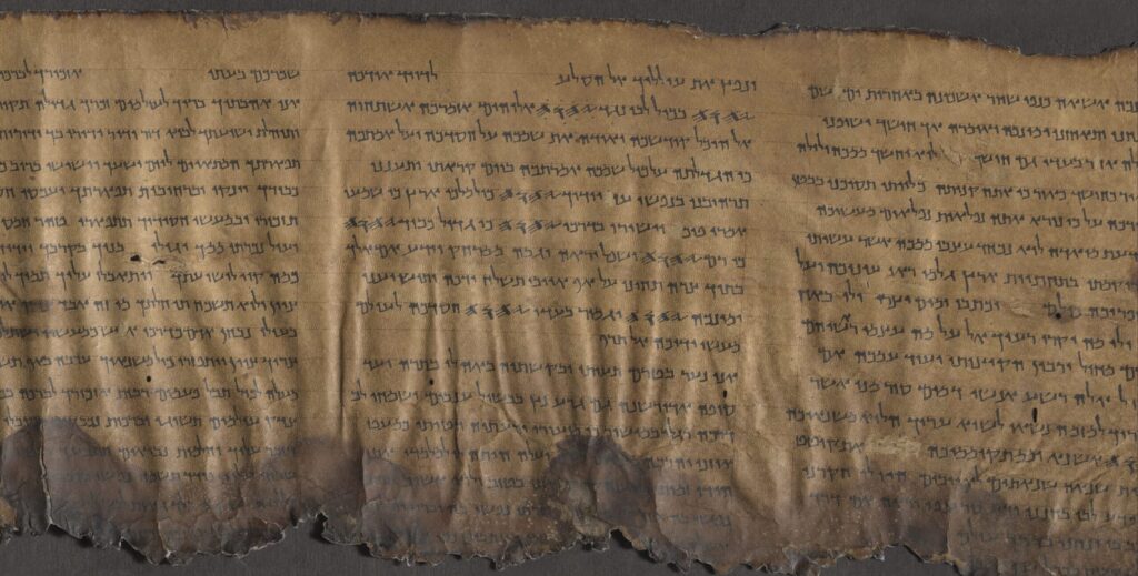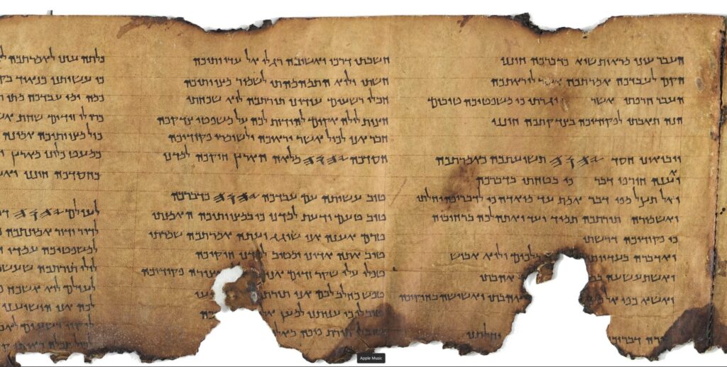 死海北西のクムランにある洞窟群で死海写本が発見されました。詩編119編の大半が入っている巻き物で、ヘブライ語で書かれていますが、エホバ(𐤉𐤄𐤅𐤄)の箇所は古ヘブライ語で書かれています。