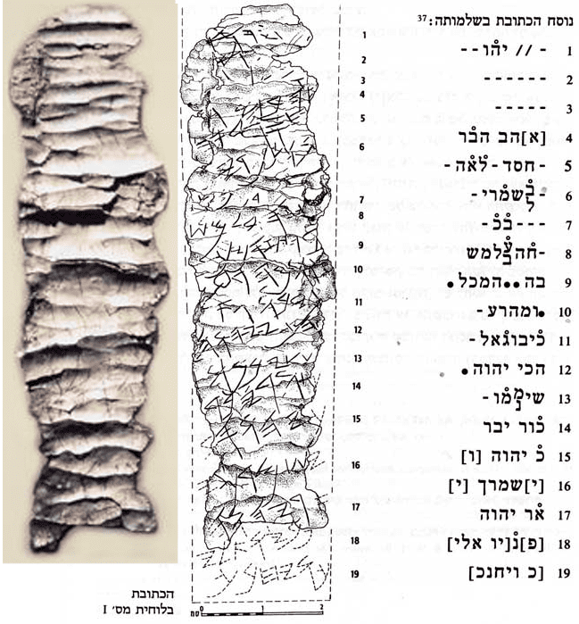 紀元前590年頃にラキュシュがバビロンに陥落する直前に書かれたもので、駐屯地のホシャヤフからラキュシュの指揮官ヤウシュに宛てた複数の書簡です。21点の陶器の破片の中で、「エホバが~ように」(May Jehovah~, 𐤉𐤄𐤅𐤄)などの形で10回以上言及しています。